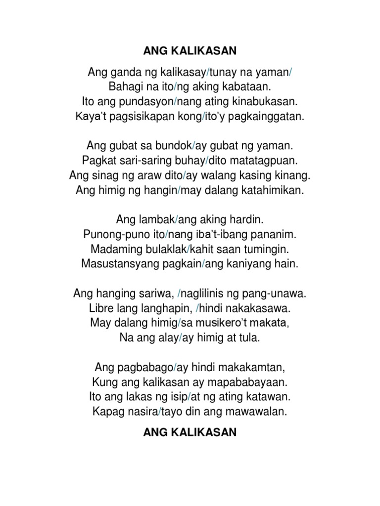 Human translations with examples. TANKA TUNGKOL SA KALIKASAN Sa araling ito ating matutunghayan kung ano ang mga halimbawa ng tulang tanka tungkol sa kalikasan na may 5 7 5 7 7 na pantig sa TagalogIto ay kinalap mula sa mga makatang Pilipino na siyang sumulat ng mga tanka ukol sa kalikasan na ating ginagamit at nagbibigay inspirasyon sa atin ngayon. Hindi lang din para sa mga bata ang pagkain ng masustansiya.